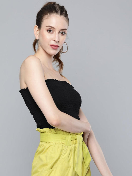 Sassafras Women's Solid Black Smocking Tube Knit Top