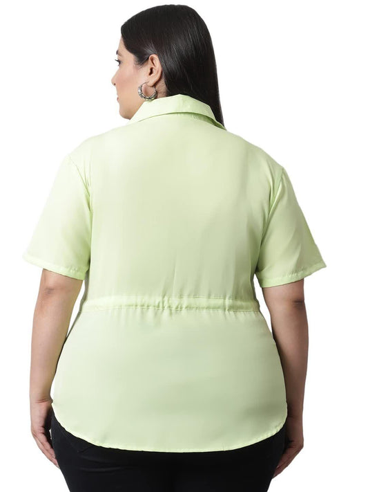 Flambeur Women's Plus Size Solid Lemon Green Casual Shirt