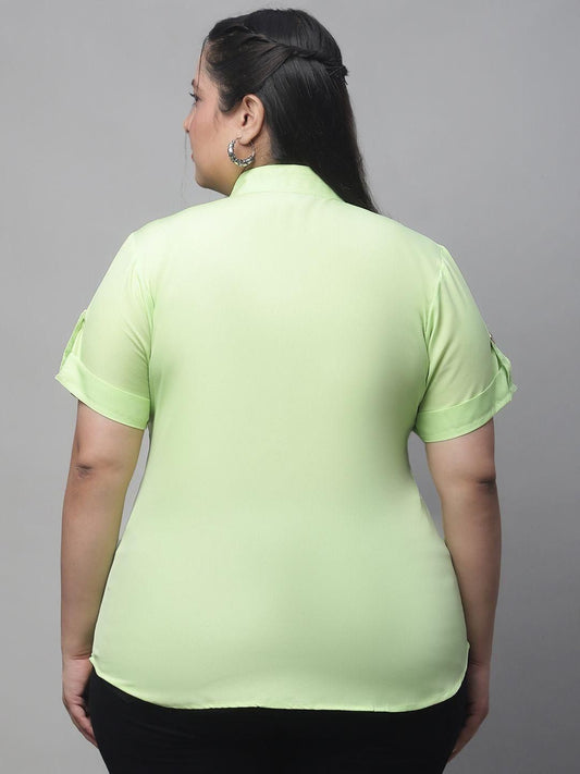 Flambeur Women's Plus Size Solid Green Half Sleeve Casual Shirt