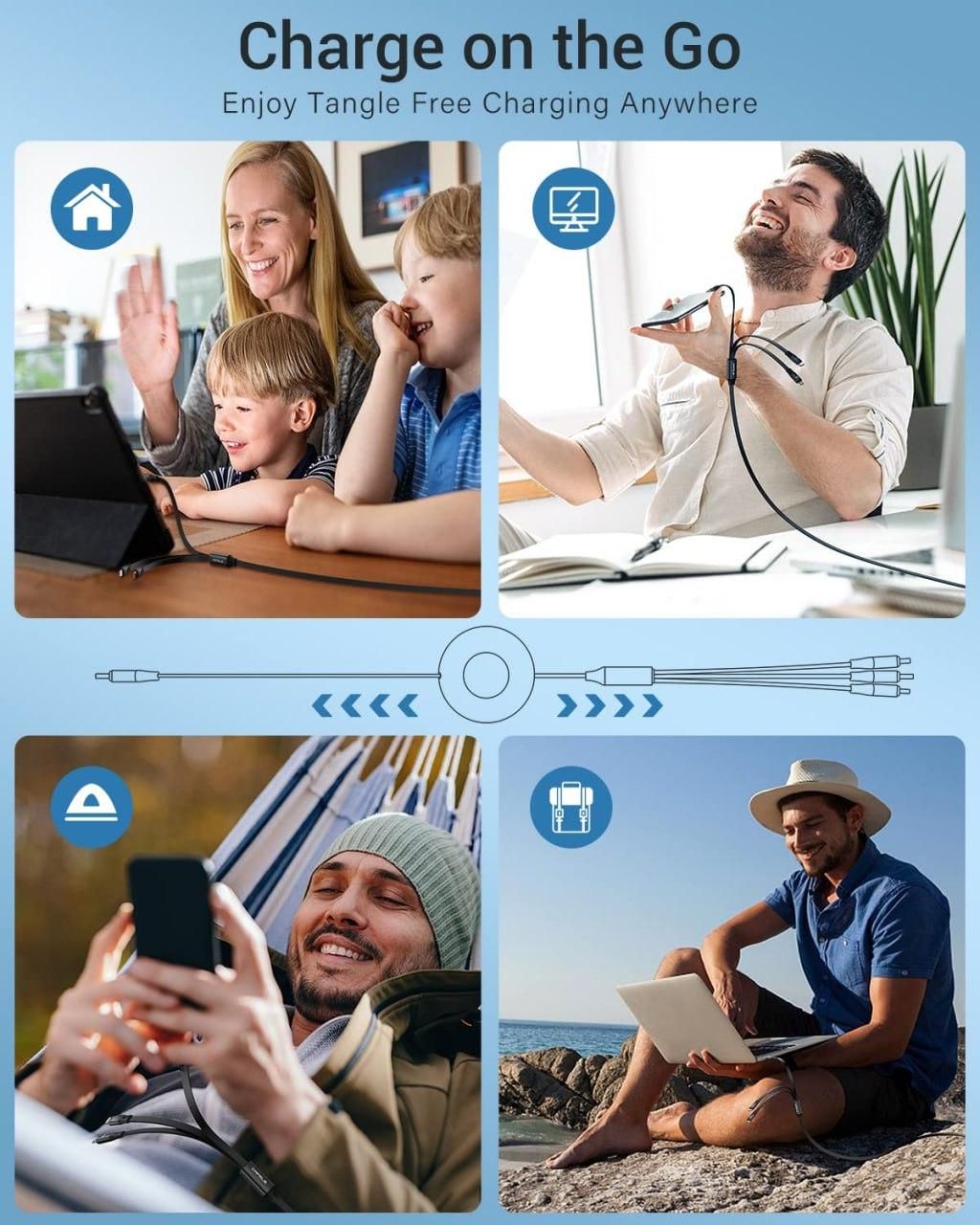 This 3 in 1 Charging Data Cable comes with 3 different pins for charging Android, iOS, and Type-C devices simultaneously. The package includes 1 cable made of plastic with a dimension of 12 x 10 x 8 cm and weighing 120 gm. Perfect for use in car, home, or office, this multi charger cable is widely compatible with all smartphones.