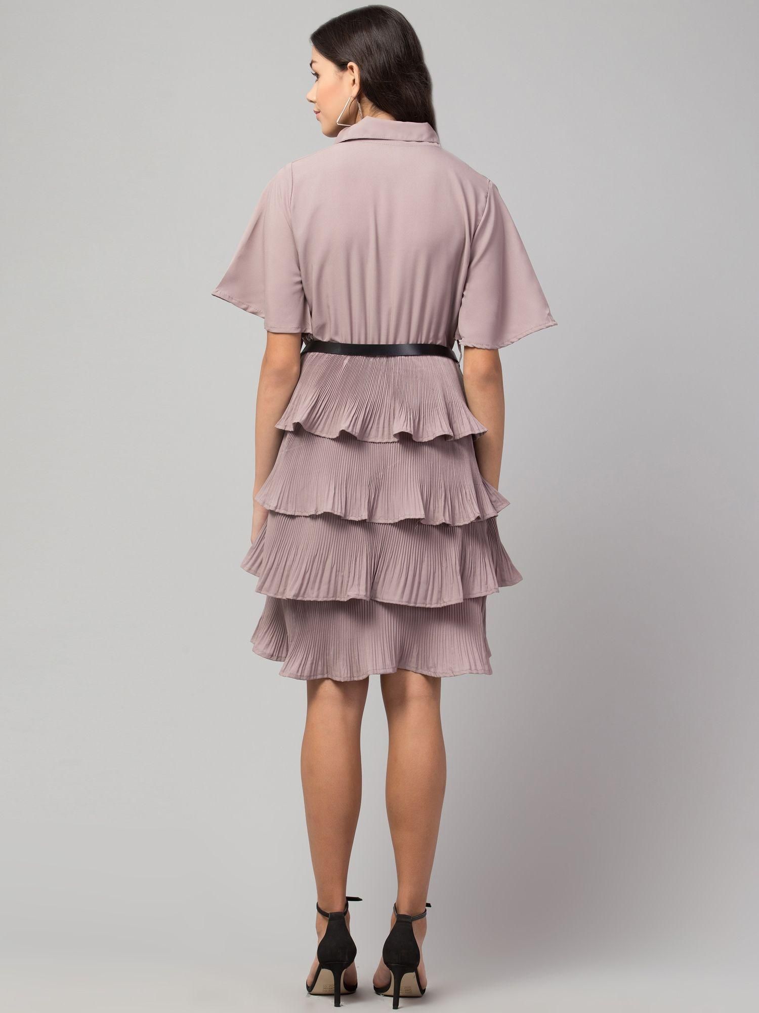 Product Name: Oceanista Women's Crepe Solid Shirt Collar Flared Purple Short Dress